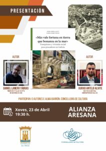 A Concellaría de Cultura propón nestes primeiros compases de abril unha nova presentación no salón de actos da Alianza Aresana,