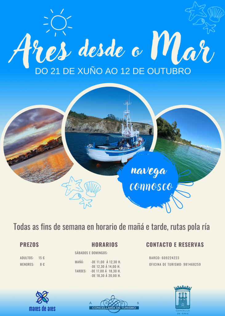 Dende o 21 de xuño até o 12 de outubro, regresa un ano máis o servizo de ‘Ares desde o Mar’, unha iniciativa de carácter turístico para explorar a riqueza mariñeira da vila. Os percorridos a bordo do M. Presas estarán dispoñibles durante as fins de semana cun prezo de 15 euros para adultos e […]