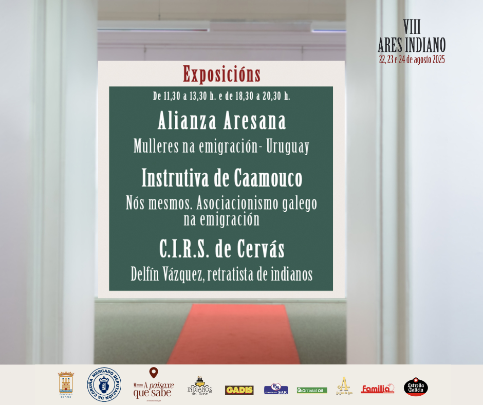 A Alianza Aresana contará coa mostra ‘Mulleres na emigración: Uruguay’, namentres que na Agrupación Instrutiva de Caamouco se instalará a exposición ‘Nós mesmos. Asociacionismo galego na emigración’ e no CIRS de Cervás ‘Delfín Vázquez, retratista de indianos’.