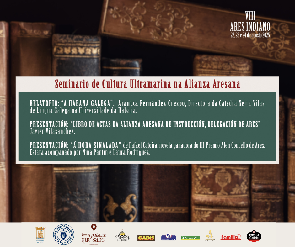 E completará o Seminario de Cultura Ultramarina a presentación de A hora sinalada, novela de Rafael Catoira gañadora do III Premio Alén de Novela Curta Concello de Ares, facendo que a literatura contribúa a entender o fenómeno migratorio dende novas ventás polas que ollar. Será o domingo, 24 de agosto, ás 12:00 h., con presenza do autor, a concelleira de Cultura, Alma Barrón, a editora de Hércules de Ediciones Laura Rodríguez e Nina Pantín, escritora.