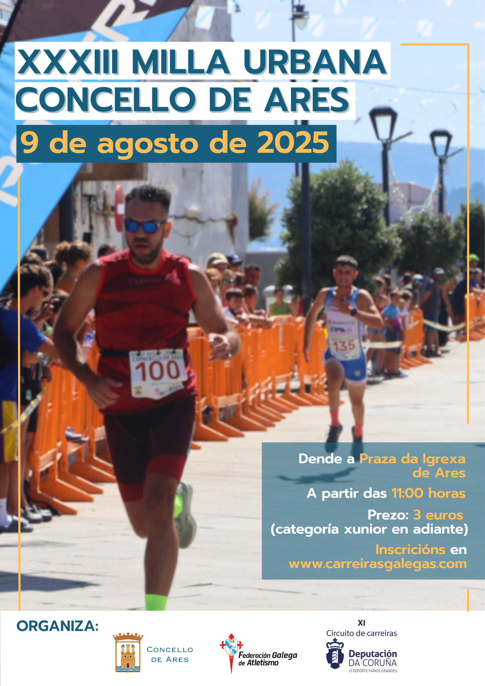 O Concello de Ares informa que se amplía o prazo de inscrición para participar na XXXIII Milla Urbana Concello de Ares ata as 23:59 horas deste luns, 4 de agosto.