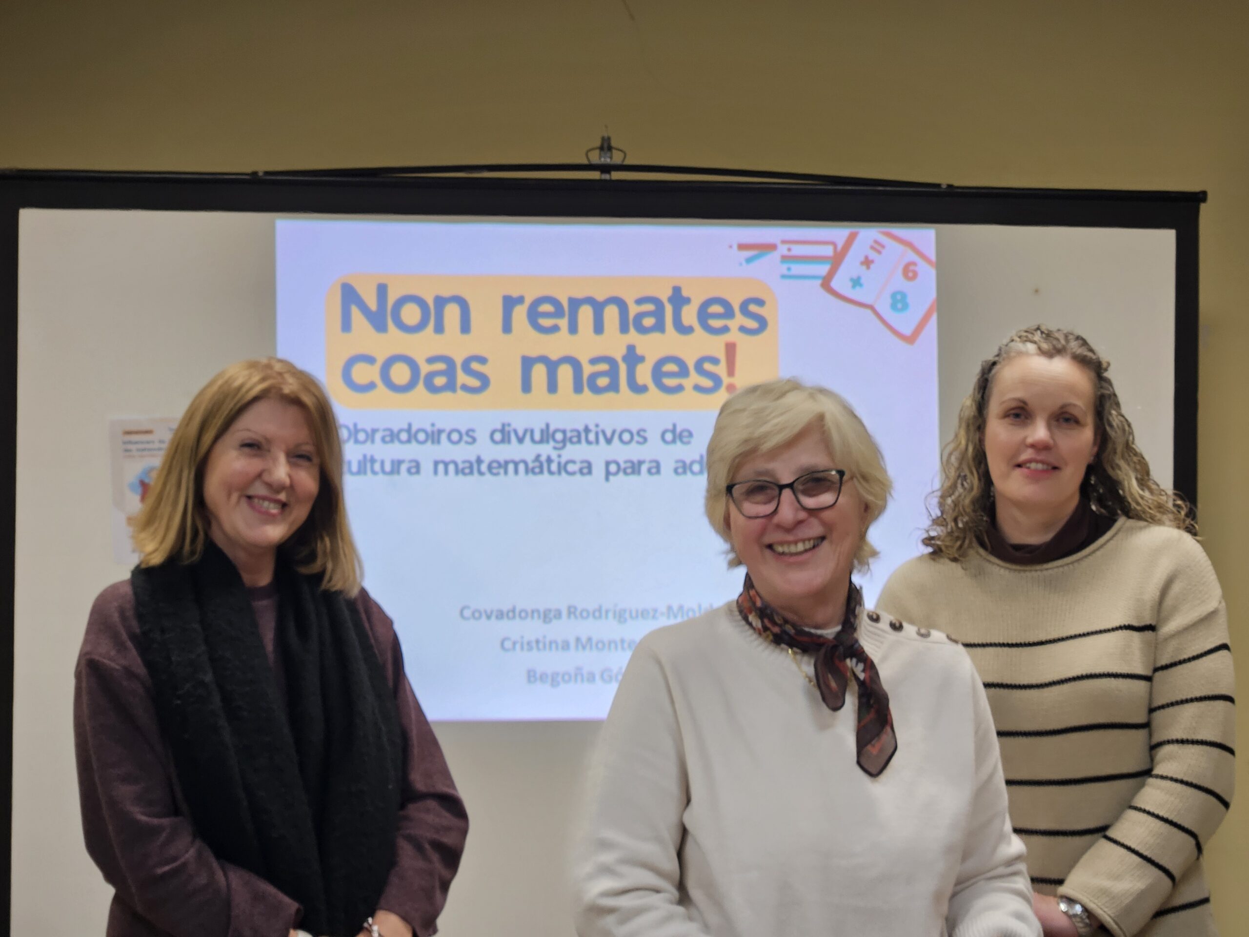A Aula de Cultura da rúa Zamborela acolleu este mércores a última sesión da iniciativa, aglutinando á veciñanza arredor da divulgación matemática da man de Covadonga Rodríguez-Moldes, Cristina Montero e Begoña Gómez, profesoras de secundaria con extensa traxectoria na docencia e licenciadas en Matemáticas encargadas de conducir todos os obradoiros, coa colaboración do Concello.