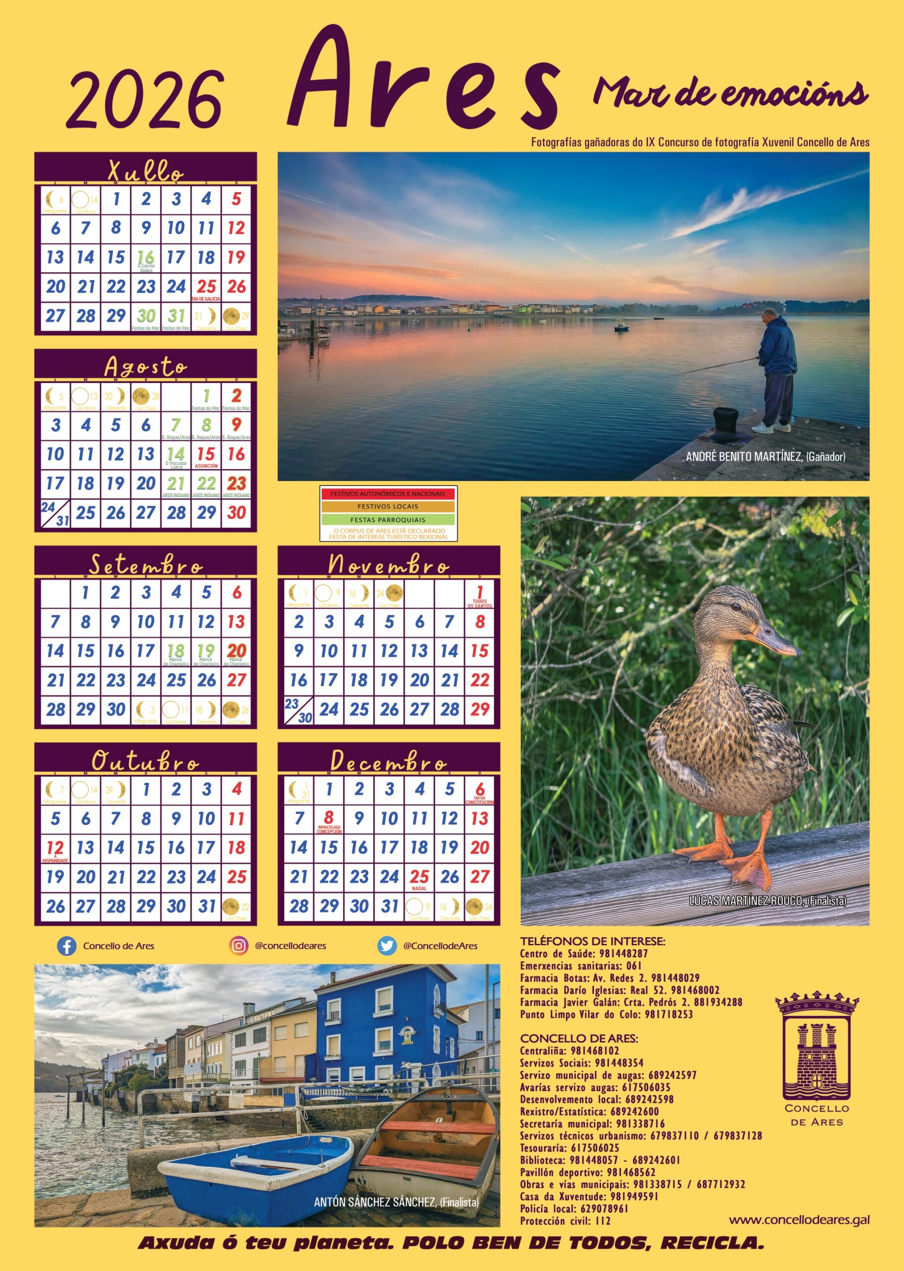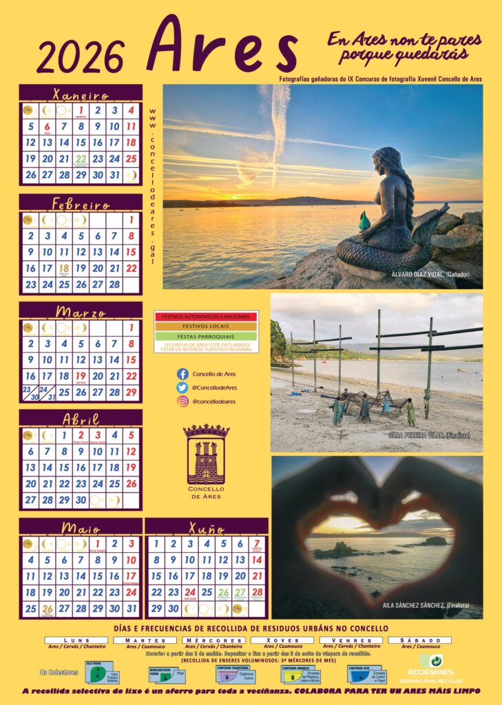 Coma se lembrou no propio acto de entrega dos premios, o calendario municipal xa está dispoñible nas instalacións da Biblioteca Municipal de Ares para toda aquela persoa que o desexe.