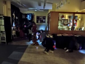Dentro da iniciativa ‘Unha biblioteca de medo’, a mocidade aventurouse entre a escuridade e as pantasmas para resolver o xogo . Lanternas, disfraces e risas encheron a Alianza Aresana, coas crianzas explorando cada recuncho dela: baixo as mesas, ao carón dos libros, nos sofás…