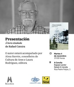 Rafael Catoira, gañador da última edición do Premio Alén de Novela Curta do Concello de Ares, conversará mañá, 4 de novembro, con Alma Barrón, concelleira
