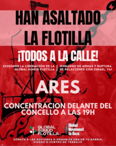 O Concello de Ares súmase ás mobilizacións internacionais tras o asalto á Global Sumud Flotilla, que tiña como obxectivo romper o bloqueo e levar axuda