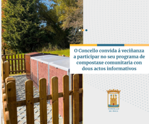 Para incrementar o emprego das dúas illas de compostaxe comunitaria que ten habilitadas a área de Medioambiente, programaranse dous actos informativos para que veciños e