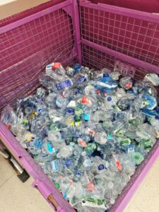 A comunidade educativa do CPI As Mirandas segue durante estas semanas a recompilar botellas de auga e tapóns no punto instalado en febreiro polo Concello,