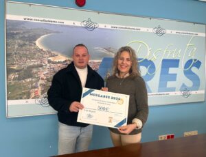 Esta mesma mañá, a concelleira de Comercio, Lucía Blanco, formalizou a entrega do primeiro premio de 500 euros do MercAres 2024-2025 ao veciño aresán Borja