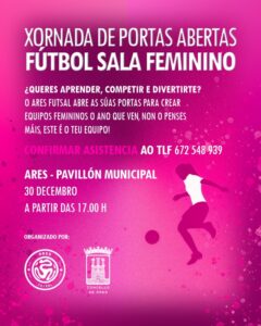 Será no pavillón municipal o 30 de decembro a partir das 17:00 h. O equipo Ares Futsal, fundado este pasado verán no municipio, e