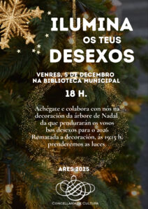O pasado venres, a Biblioteca Municipal engalanouse para recibir este período festivo que vén e, xa de paso, encherse de grandes desexos para o 2026.