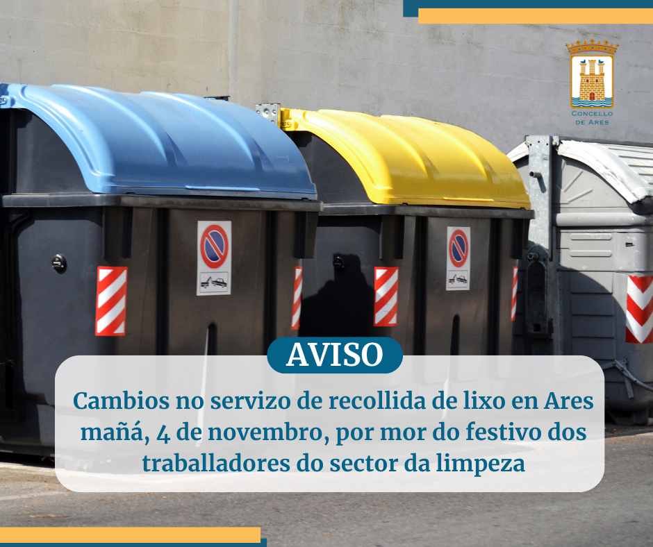 Cambios en el servicio de recogida de basura en Ares mañana, 4 de noviembre, por la celebración de San Martín de Porres