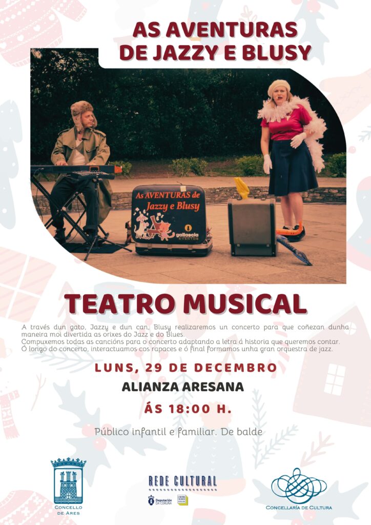 El público infantil y familiar podrá disfrutar el lunes, 29 de diciembre, de una propuesta de teatro musical en estas fechas navideñas. A partir de las 18:00 h, en la Alianza Aresana, el equipo de Gallaecia Eventos profundizará en los orígenes del jazz y del blues de la mano del gato Jazzy y el perro […]