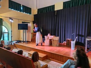 La actividad hizo que los niños y niñas jugasen con el sonido y la palabra a través de adivinanzas, trabalenguas y cuentos rimados, descubriendo el poder de la gestualidad y la música para contar historias.