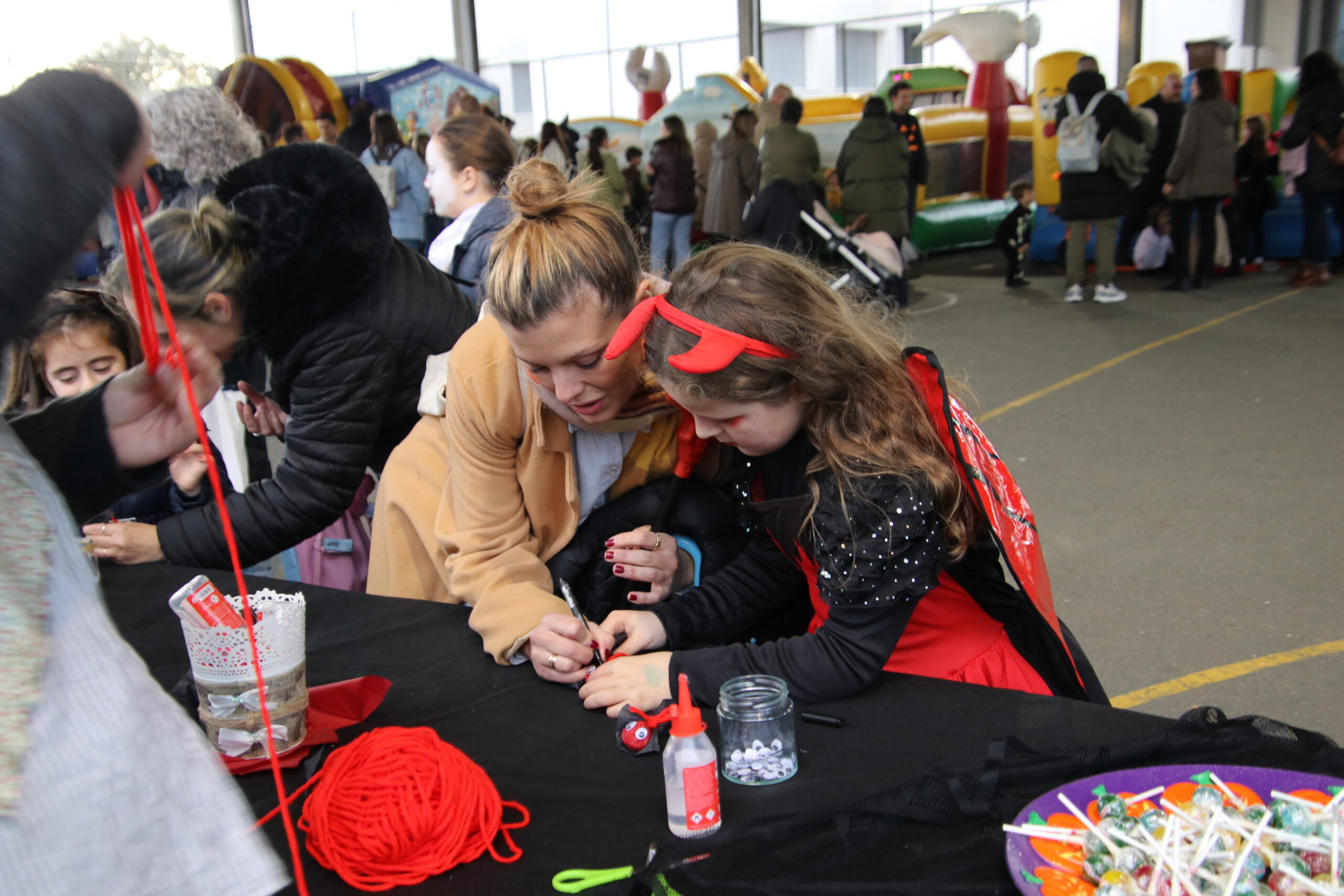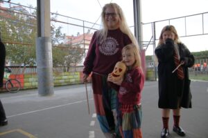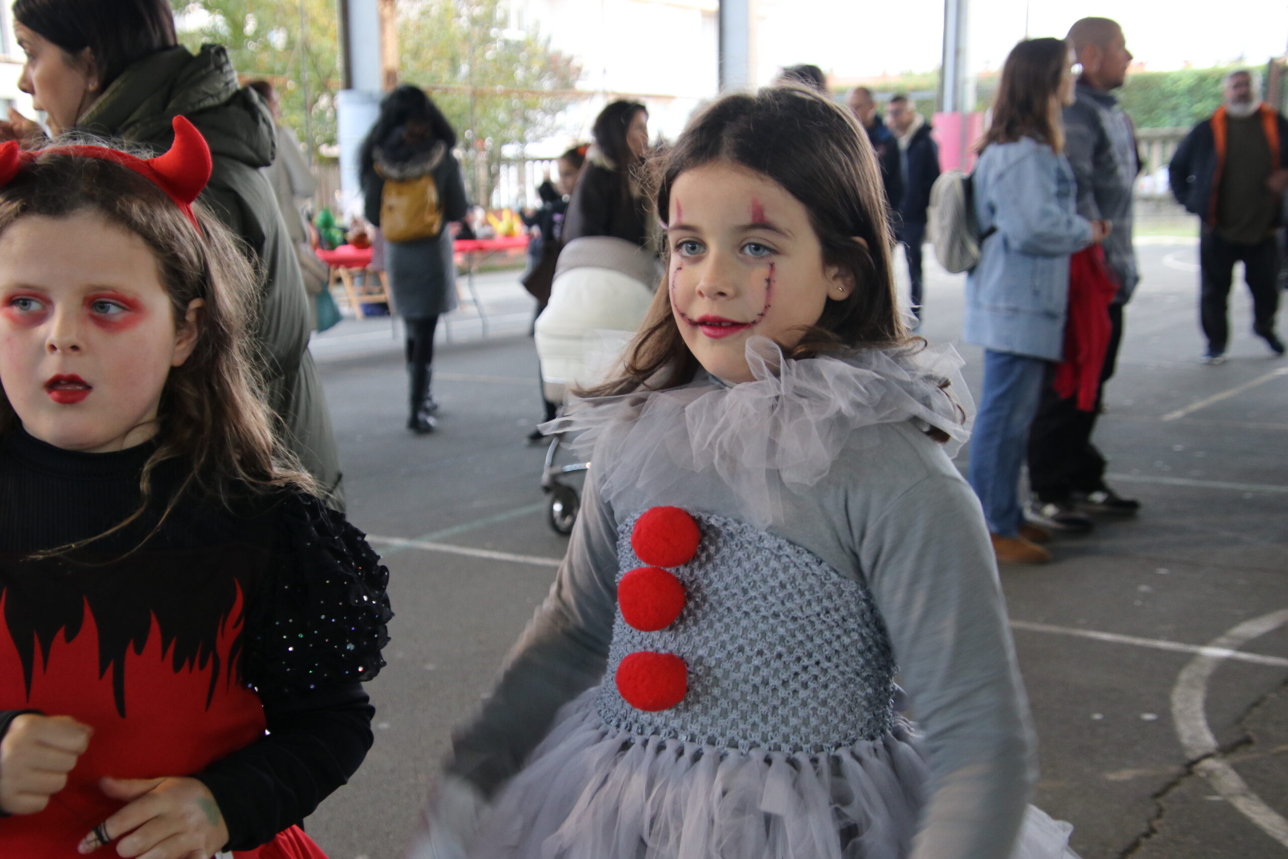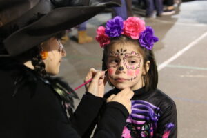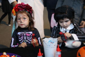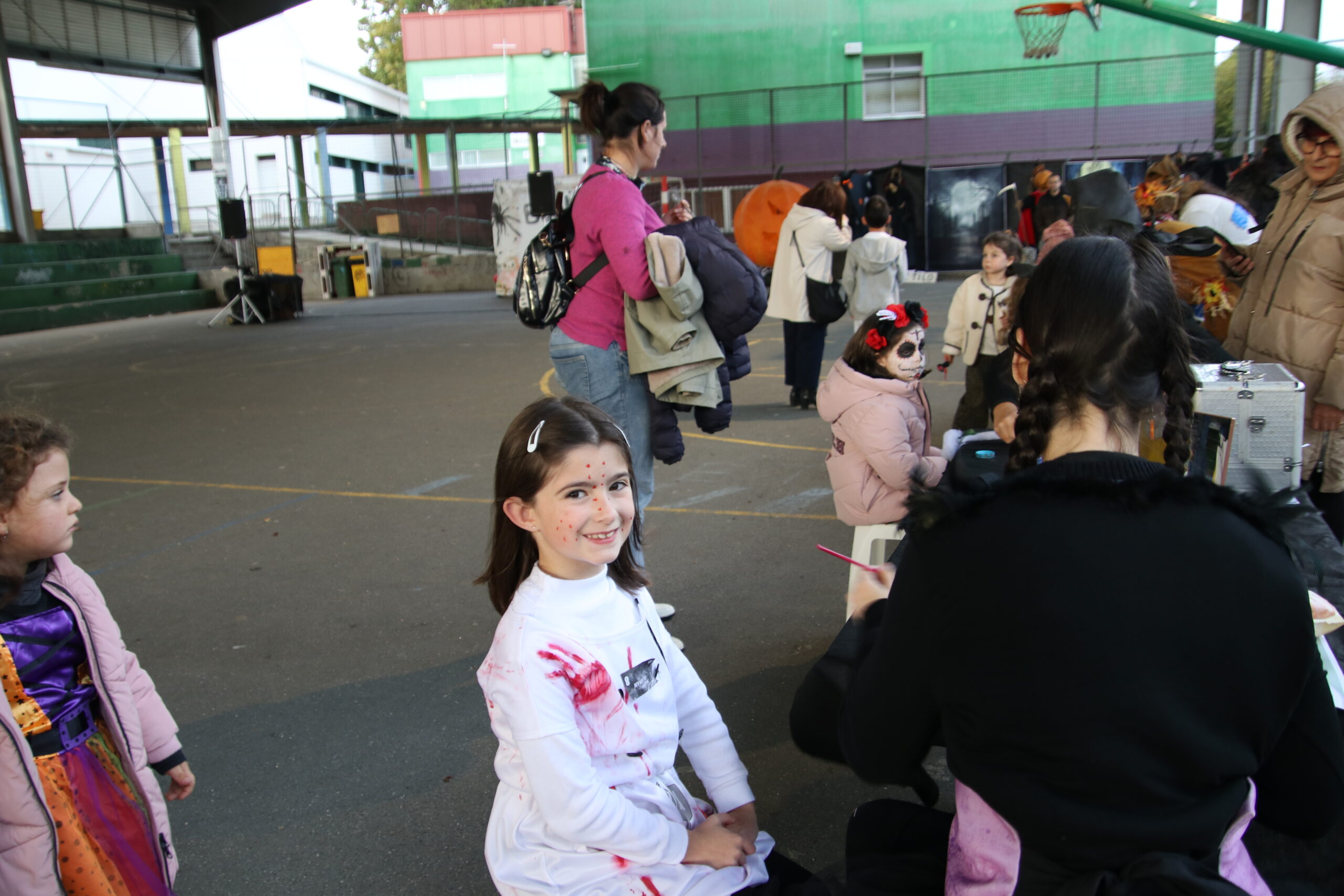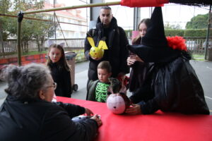 Las familias gozaron de las actividades organizadas desde la Concejalía de Cultura, con talleres —uno de heridas y maquillaje y otro de chupa chups vampíricos—, hinchables, el “cantabaila”, animación musical y, por supuesto, un buen puñado de castañas asadas.