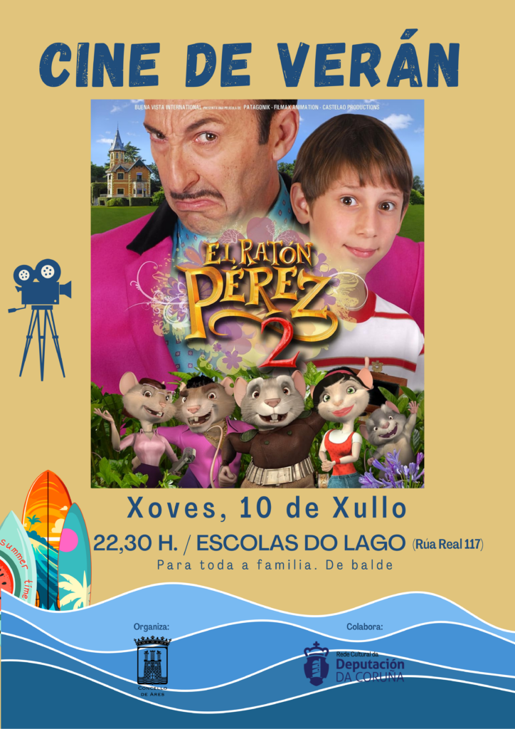 • La primera de las proyecciones estará protagonizada por la película “Ratón Pérez 2” y se organizará en el patio de las Escuelas de O Lago a partir de las 22:30 h.