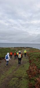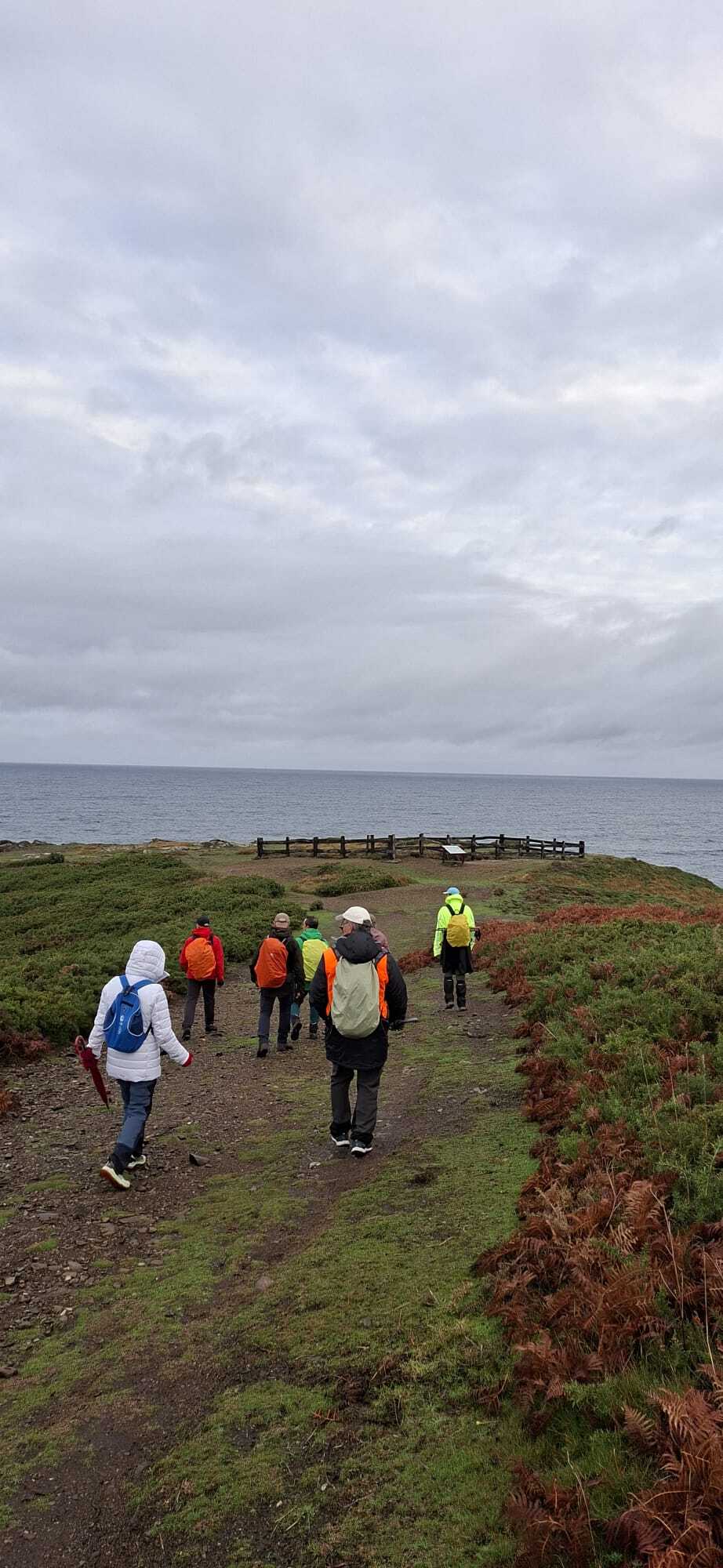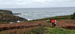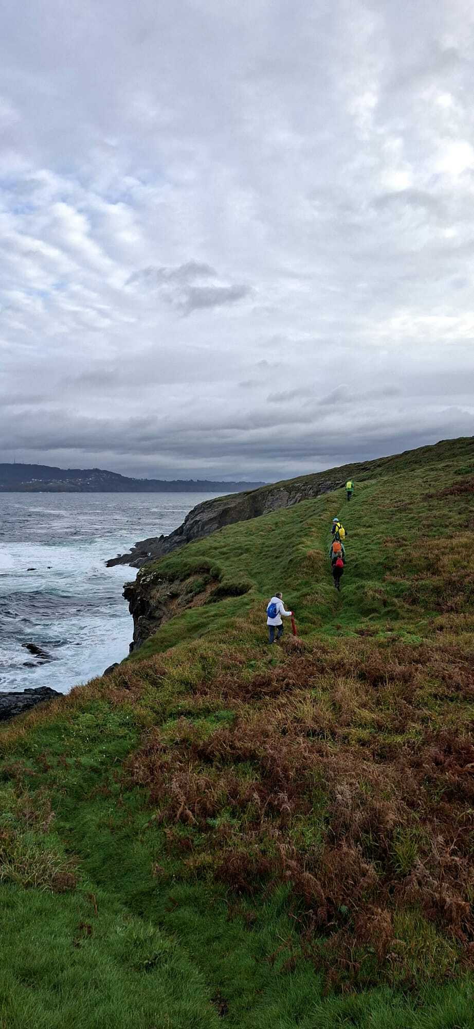 Tras caminar entre formaciones rocosas y tramos costeros, el grupo finalizó el recorrido de 11 kilómetros en el puerto de Lorbé, conocido por su tradición marinera y por la belleza de su entorno.