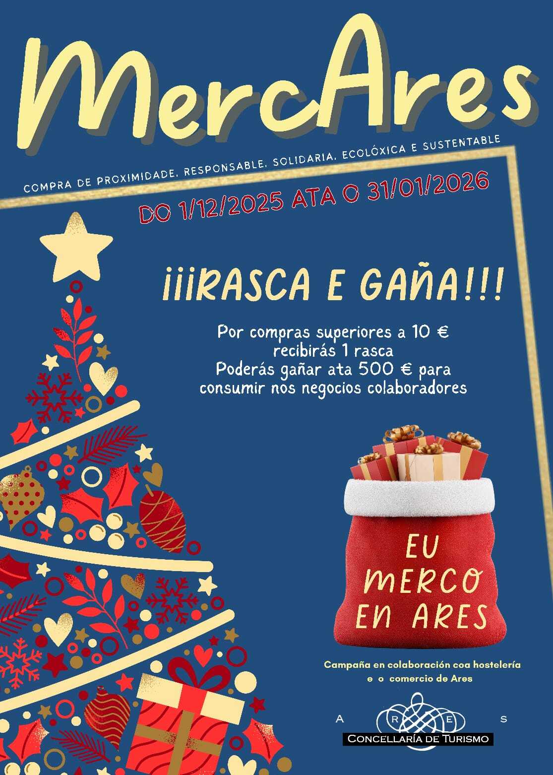 • El Ayuntamiento impulsará del 1 de diciembre al 31 de enero esta campaña de fomento de las compras en la hostelería y el comercio local, que contará con la participación de 87 negocios de Ares.