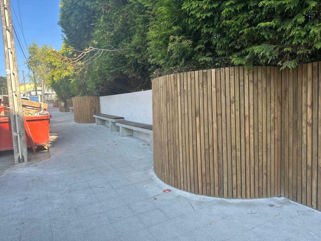 A área de Urbanismo municipal vén de informar do remate da actuación de acondicionamento no muro anexo ao CPI As Mirandas, unha estrutura que xa presenta un novo revestimento baseado nun chapado de granito, amais de listóns de madeira de castaño nas zonas que conteñen ás árbores. De igual xeito, a intervención permitiu mellorar os bancos de formigón, gañando en comodidade e promovendo un impulso estético do muro.