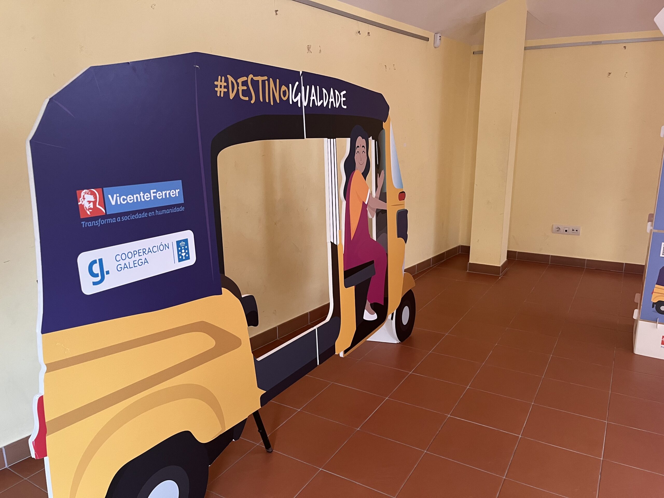 Baixo o título ‘Destino Igualdade’, a exposición forma parte das programacións do Concello para celebrar o 8M, Día Internacional da Muller, e permite achegarse a unha experiencia de resiliencia, superación e empoderamento feminino tanto de Nagalaskhmi como a do resto de mulleres que tamén exercen de condutoras de mototaxis, todas elas formadas pola Fundación Vicente Ferrer, a ONGD que colabora coa institución aresá na posta en marcha desta exposición.