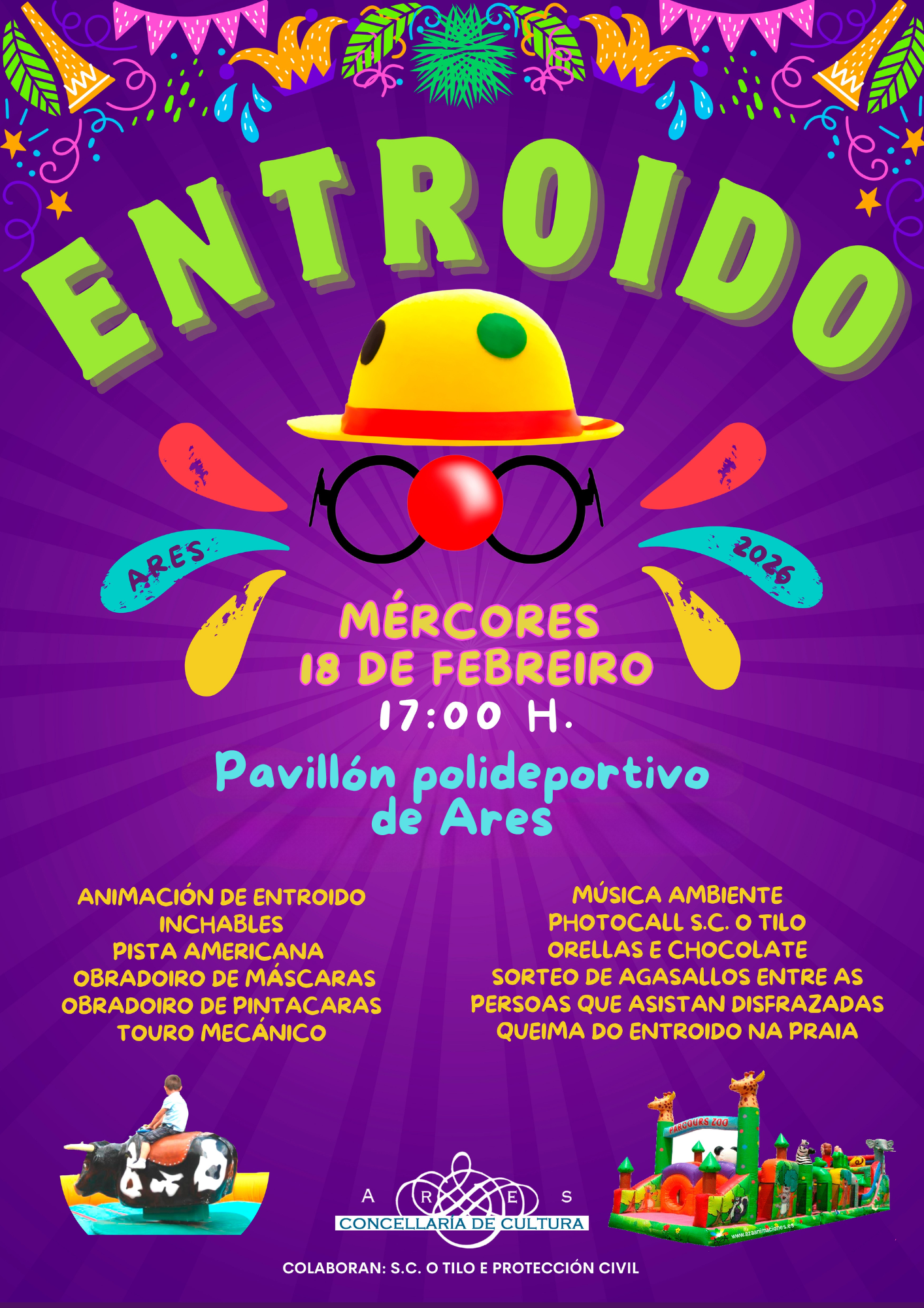 Achégate mañá a pasalo ben con inchables, obradoiros de máscaras e pintacaras, un touro mecánico, chocolate quentiño e orellas…
