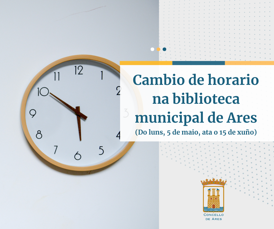 Informamos de que a partir de hoxe, 5 de maio, as instalacións da biblioteca contarán cun cambio de horario ata o vindeiro 15 de xuño. Deste xeito, a apertura realizarase da seguinte maneira: