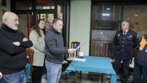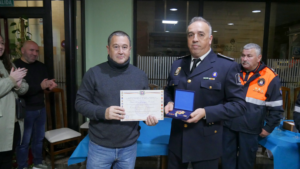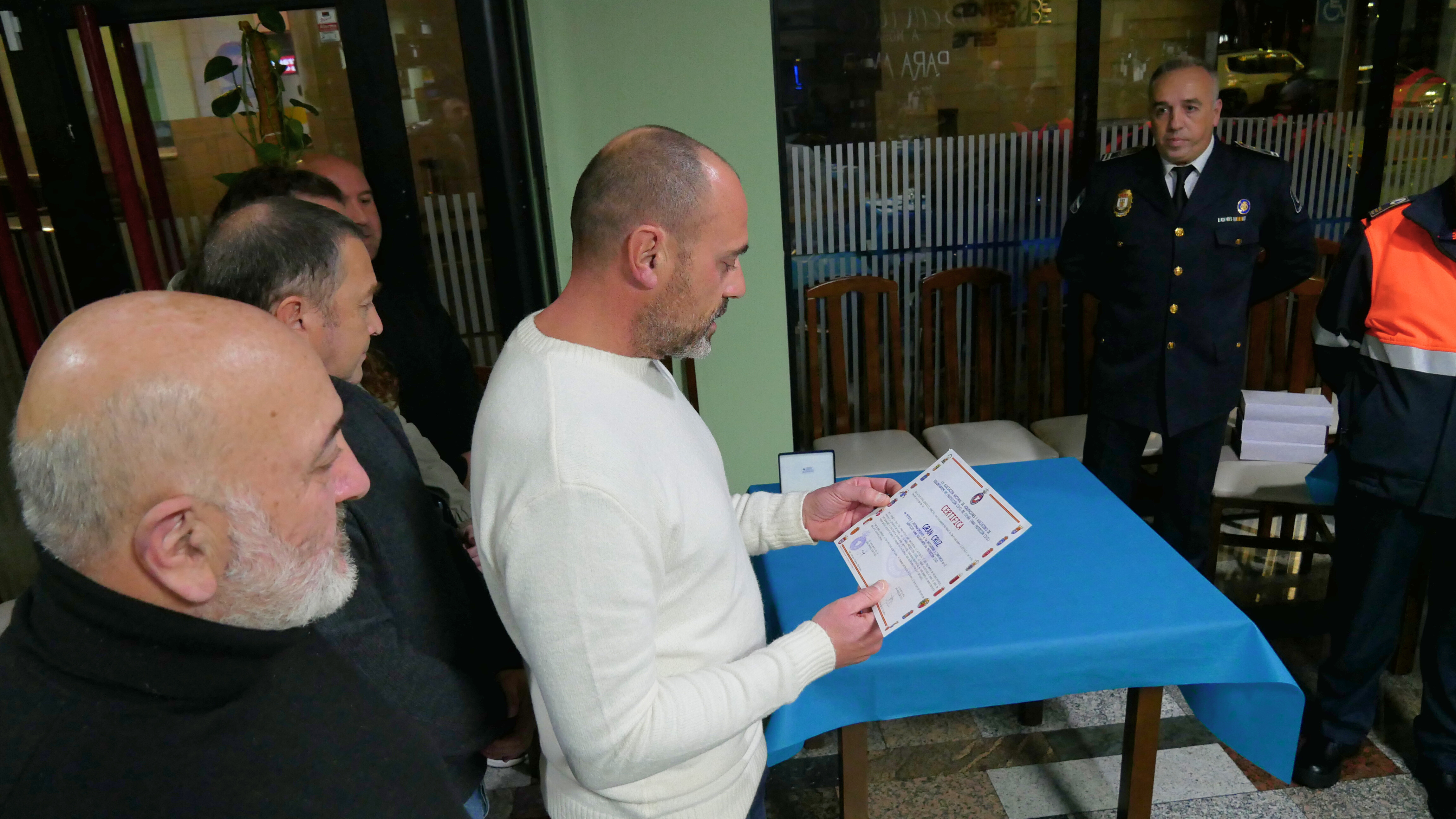 Foi o voceiro do BNG, Faustino Seco, quen formalizou a entrega da última insignia, a Cruz de Servizos Distinguidos na categoría de ouro, que acredita os méritos no exercicio do seu deber, a Jaime Alberto Domínguez Fernández, Xefe da Policía Local da vila. Pechouse o acto co agradecemento do propio corpo policial aresán ó labor do voluntariado de Protección Civil nos operativos que se desenvolven a cotío en Ares.