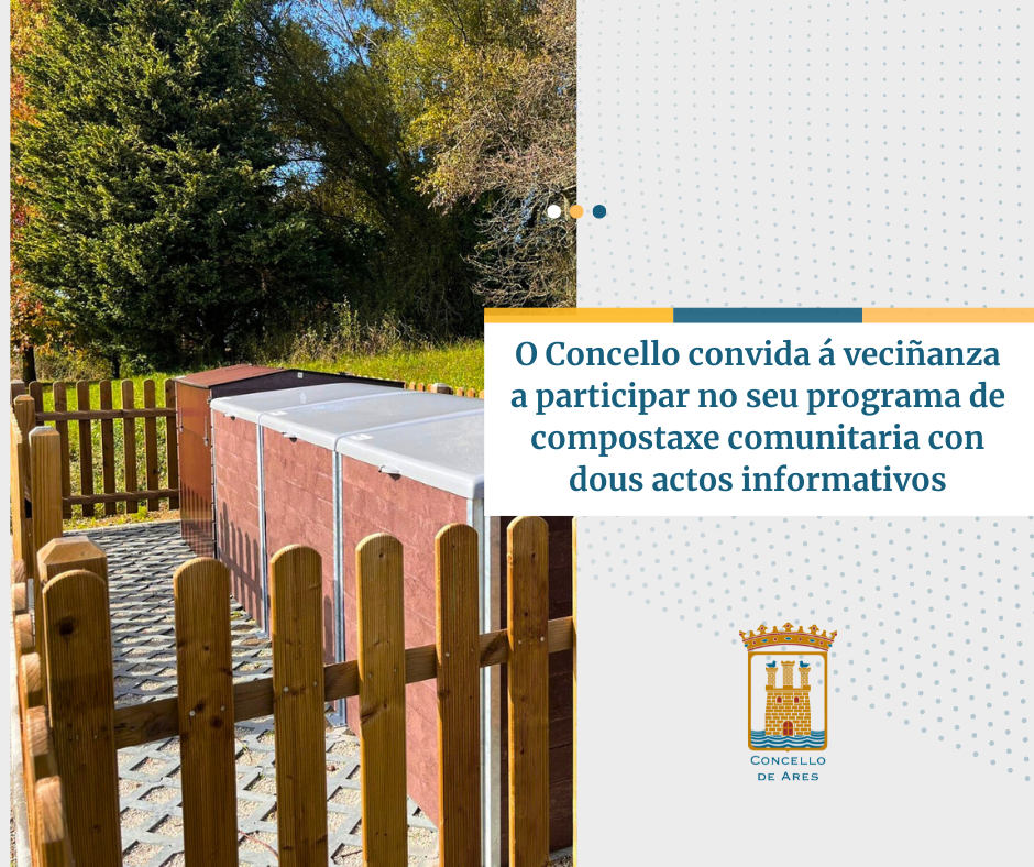 A Concellaría de Medioambiente organizará esta mesma semana dous eventos vencellados directamente coas illas de compostaxe comunitarias activas en Ares, operativas dende finais do pasado ano para que a veciñanza poida depositar os residuos orgánicos xerados a diario nas súas vivendas particulares.