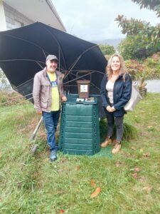 As primeiras persoas que formalizaron a inscrición no programa de Compostaxe Doméstica recibiron nos seus domicilios os composteiros cunha capacidade de 400 litros das mans da concelleira para que os sitúen no exterior da vivenda, nunha zona sombreada e idealmente baixo unha árbore de folla caduca, en contacto directo coa terra para facilitar a entrada de microorganismos descompoñedores.