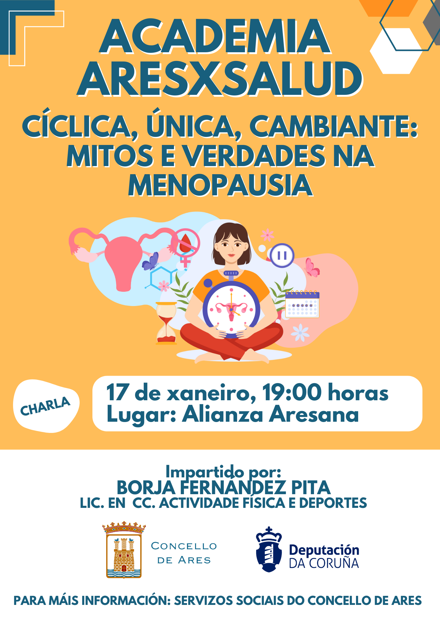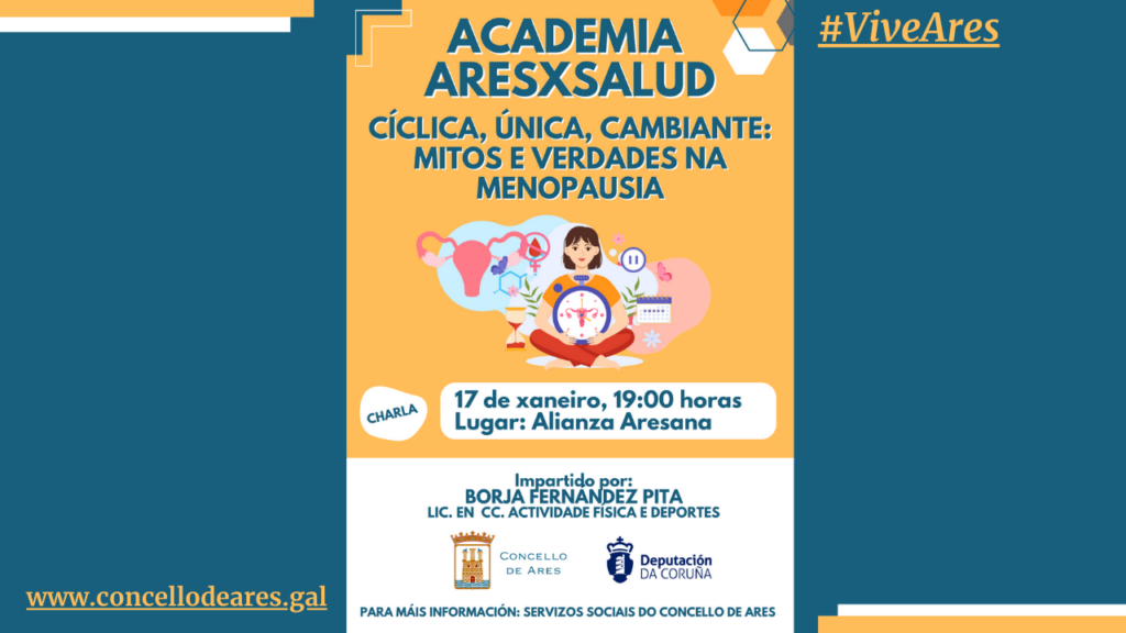 A Alianza Aresana acollerá esta terceira sesión o 17 de xaneiro ás 19:00 horas, unha ponencia onde Borja Fernández Pita, licenciado en Ciencias da Actividade Física e Deportes, cun máster en Psiconeuroinmunología clínica e diplomado en Osteopatía, indagará no ciclo hormonal femenino.