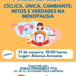 ‘Cíclica, única, cambiante: mitos e verdades na menopausia’ é o título desta terceira ponencia dirixida por Borja Fernández Pita, graduado en Ciencias da Actividade Física e Deportes.