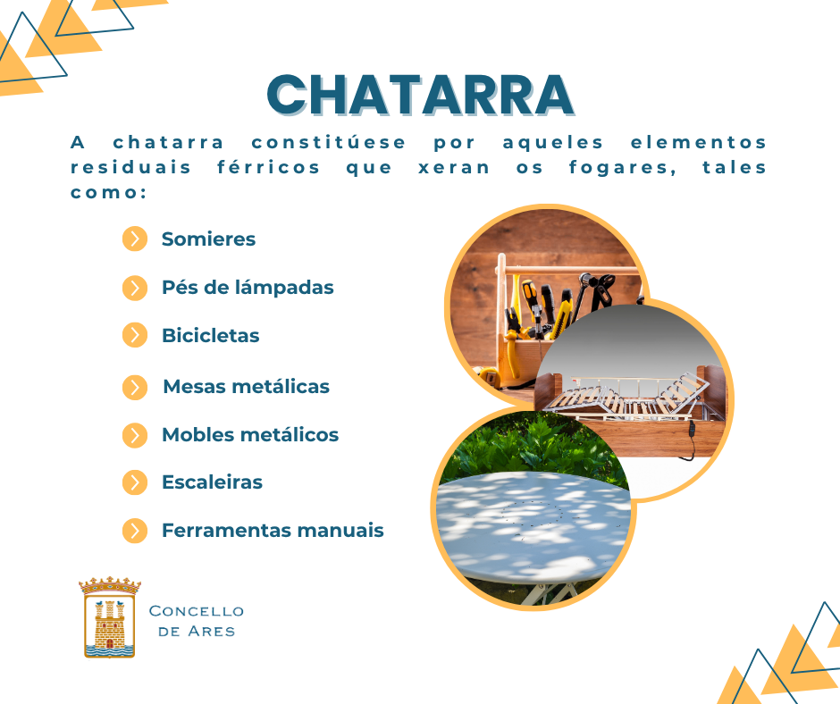 • Chatarra: somieres, elementos metálicos, ferramentas manuais…