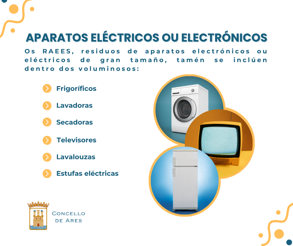 • Aparatos eléctricos ou electrónicos: frigoríficos, lavadoras, secadores, televisores…