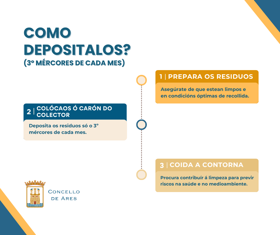 Para a xestión desta tipoloxía de residuos, lembra que todo residente en Ares ten á súa disposición o Punto Limpo de Vilar do Colo, compartido con Fene e Cabanas, amais do punto limpo móbil do Concello de Ares para o depósito de aceites.