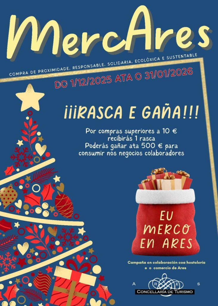 En xogo continúan os premios de 5, 10, 20 ou 100 euros nos vales-rascas que integran o MercAres. Só tes que facer unha compra superior a 10 euros nalgún dos máis de 90 negocios adheridos para recibir o teu rasca, e se resultas agraciado poderás investir o importe nos propios comercios participantes.