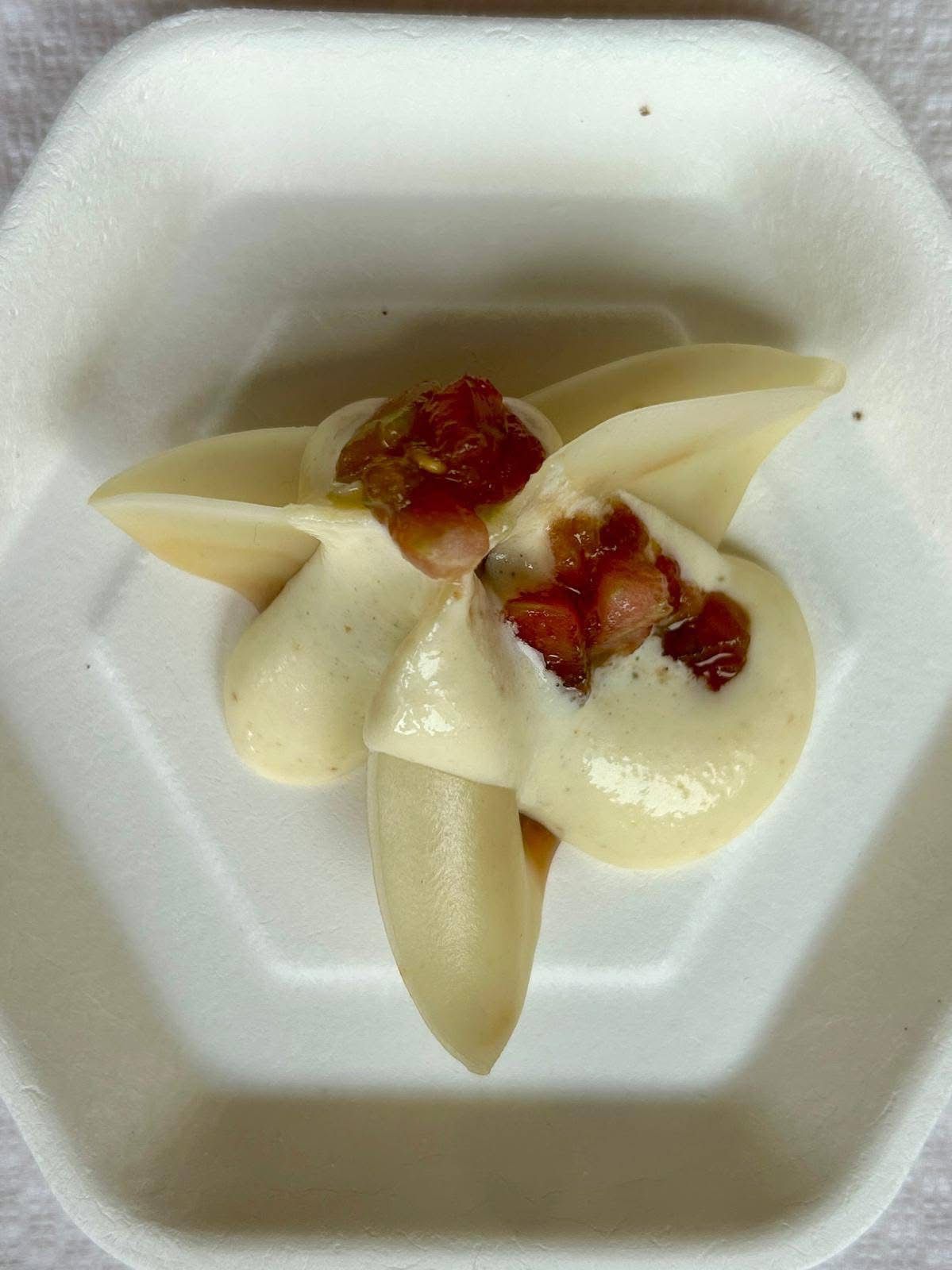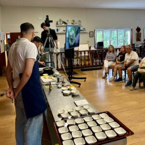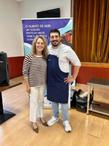 Escuma de ourizo con panko frito, brioche recheo de ourizo de mar con emulsión de xema e un ravioli de ourizo con crema de queixo San Simón foron as receitas que preparou Pérez, dándoas a probar ao público asistente. O formato do showcooking combinou as explicacións de elaboración coa degustación e a posta en valor deste “produto do mar de enorme calidade, tan vinculado á tradición mariñeira de Chanteiro”, en palabras de Lucía Blanco, concelleira de Turismo e Comercio, que se achegou até o evento en representación da institución aresán.