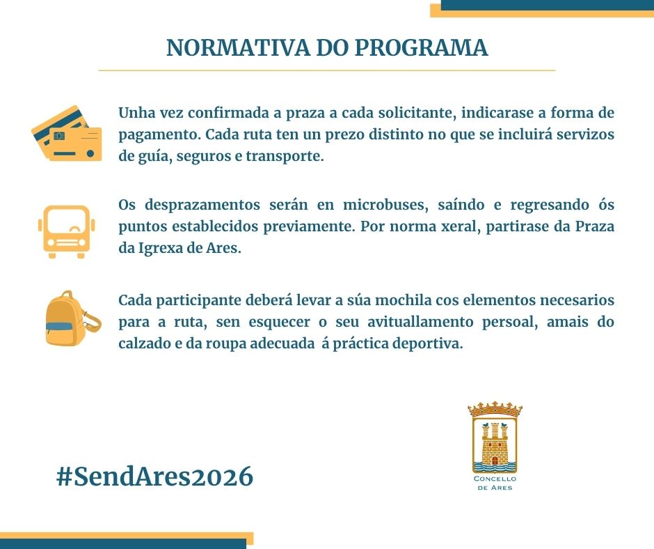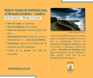 A nova tempada do SendAres continuará de feito poñendo en valor o patrimonio natural de Galicia e tamén o de máis proximidade a Ares, facilitando á veciñanza os desprazamentos e os servizos de guía nas súas saídas.