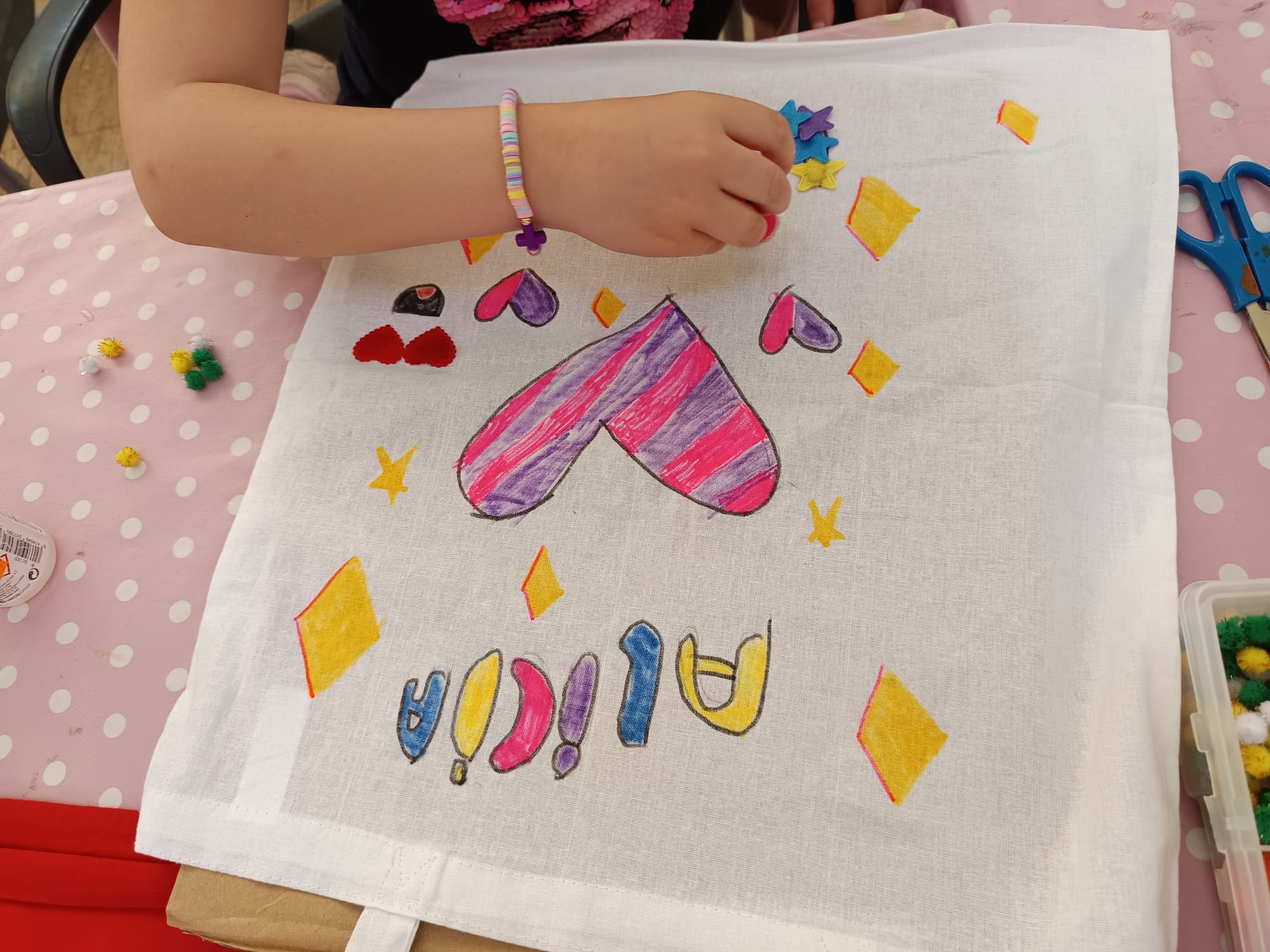 Dezanove nenos e nenas dende os 6 anos acudiron onte á Biblioteca Municipal de Ares para poñerse mans á obra e deseñar as súas propias bolsas para libros totalmente personalizadas.
