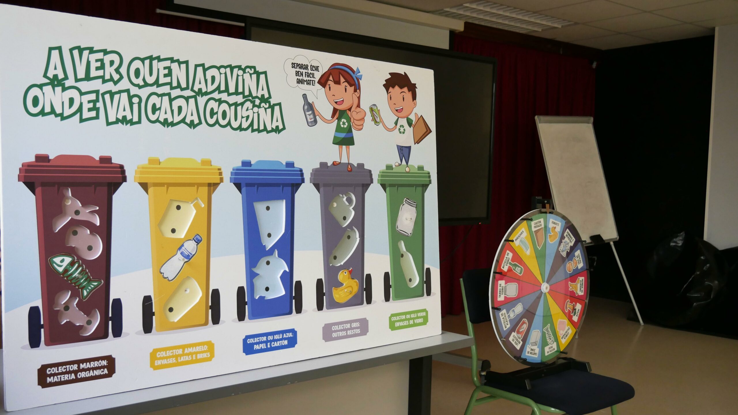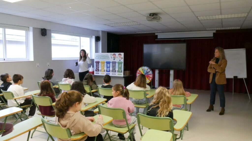 De feito, no CPI recibiron a visita da concelleira de Medioambiente, Lucía Blanco, que acompañou aos rapaces e rapazas nas súas sesións. Nelas aprenderon os tipos de colectores que hai, cada un coa súa cor, e que residuos é preciso depositar en cada un deles para facelo de xeito adecuado. E todo isto xogando cun quebracabezas xigante e unha ruleta para que a aprendizaxe sexa tamén un acto lúdico.