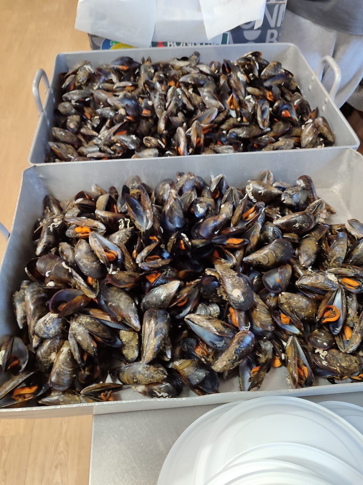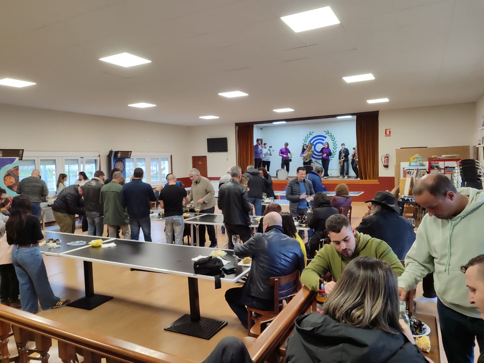 Os produtos do mar seguiron presentes coa organización dunha mexillonada popular para que veciños e veciñas gozaran do mellor do Atlántico acompañados pola música en directo da charanga Santa Compaña, en colaboración co Concello aresán.