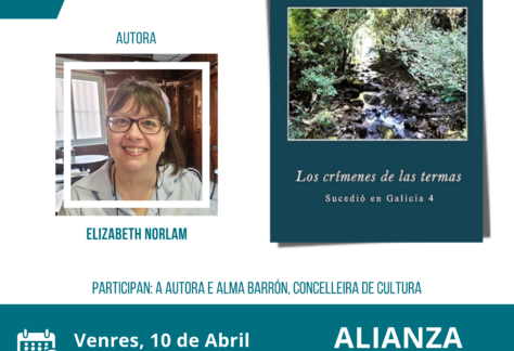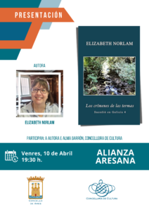 A Alianza Aresana acollerá a presentación literaria de ‘Los crímenes de las termas’, de Elizabeth Norlam